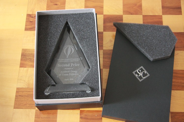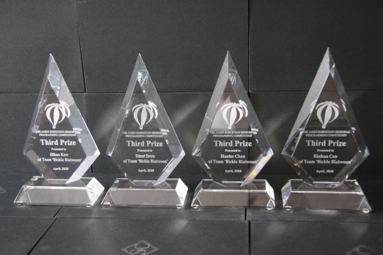 The trophies for First, Second, and Third Prizes all came from Innovative Imprints in Pickering, Ontario.